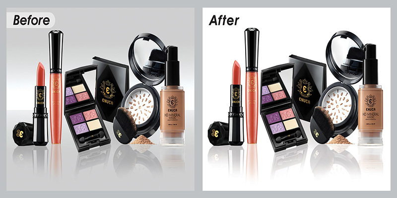 In some product photo, the background surface does not reflect in bottom area during photography. Product/ natural shadow is applied.The quality of 3D product increases a lot. As a result, products attract customers.